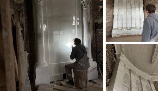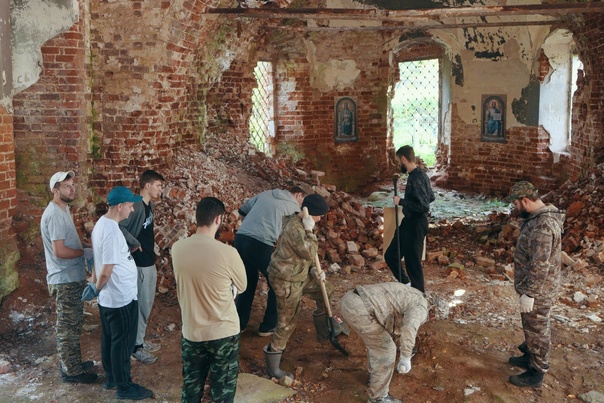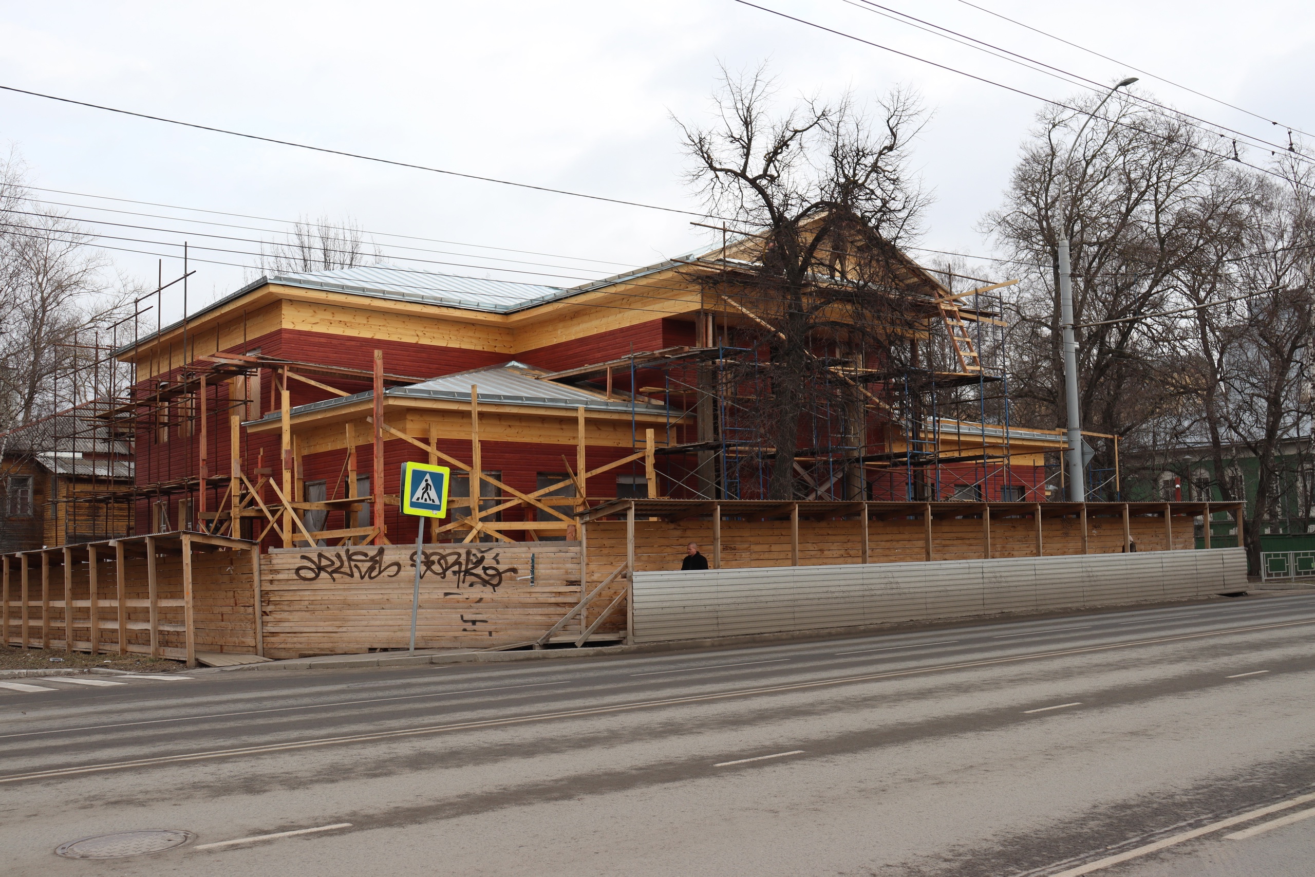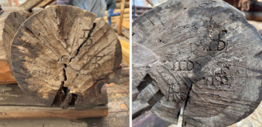 Готово уже 6 венцов. Реставраторы работают не с привычным бревном, а с брусом