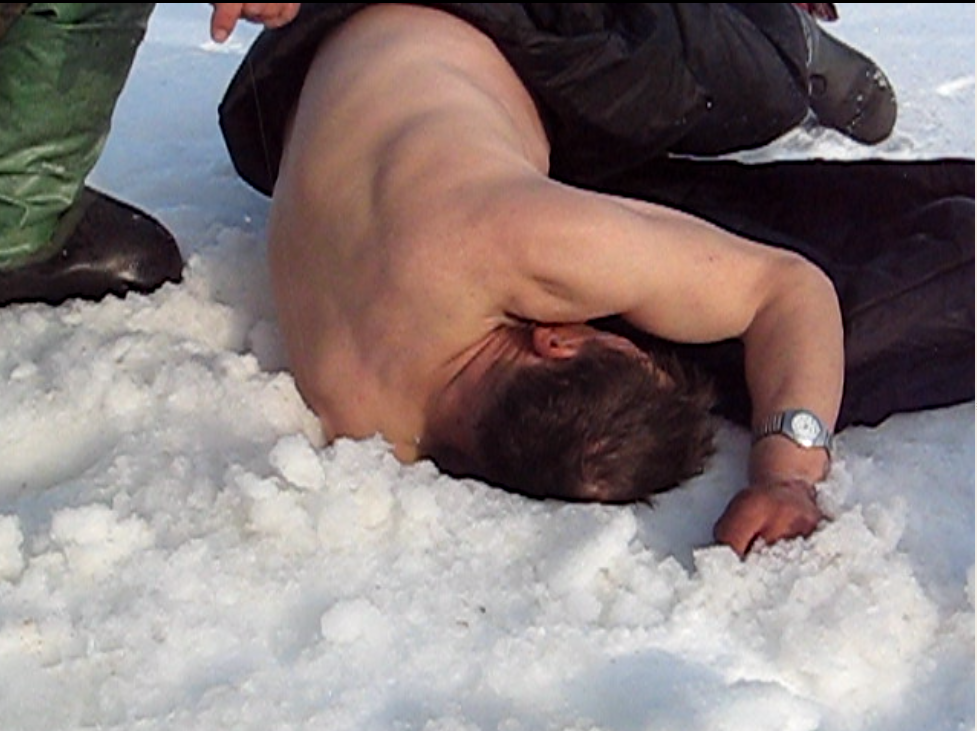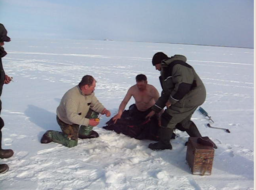 Мы все подтянулись к месту "происшествия" и своими советами, скорее всего, только мешали, а не помогали. А Андреич не стал долго рассуждать. Сказал только, что у него руки подлиннее, (что было абсолютной правдой, так как тот рыбачок был гораздо ниже ростом), скинул куртку и свитер, разделся до пояса, очистил от снега место возле лунки до самого льда, а потом подстелив куртку, улегся на лед и засунул руку в воду.