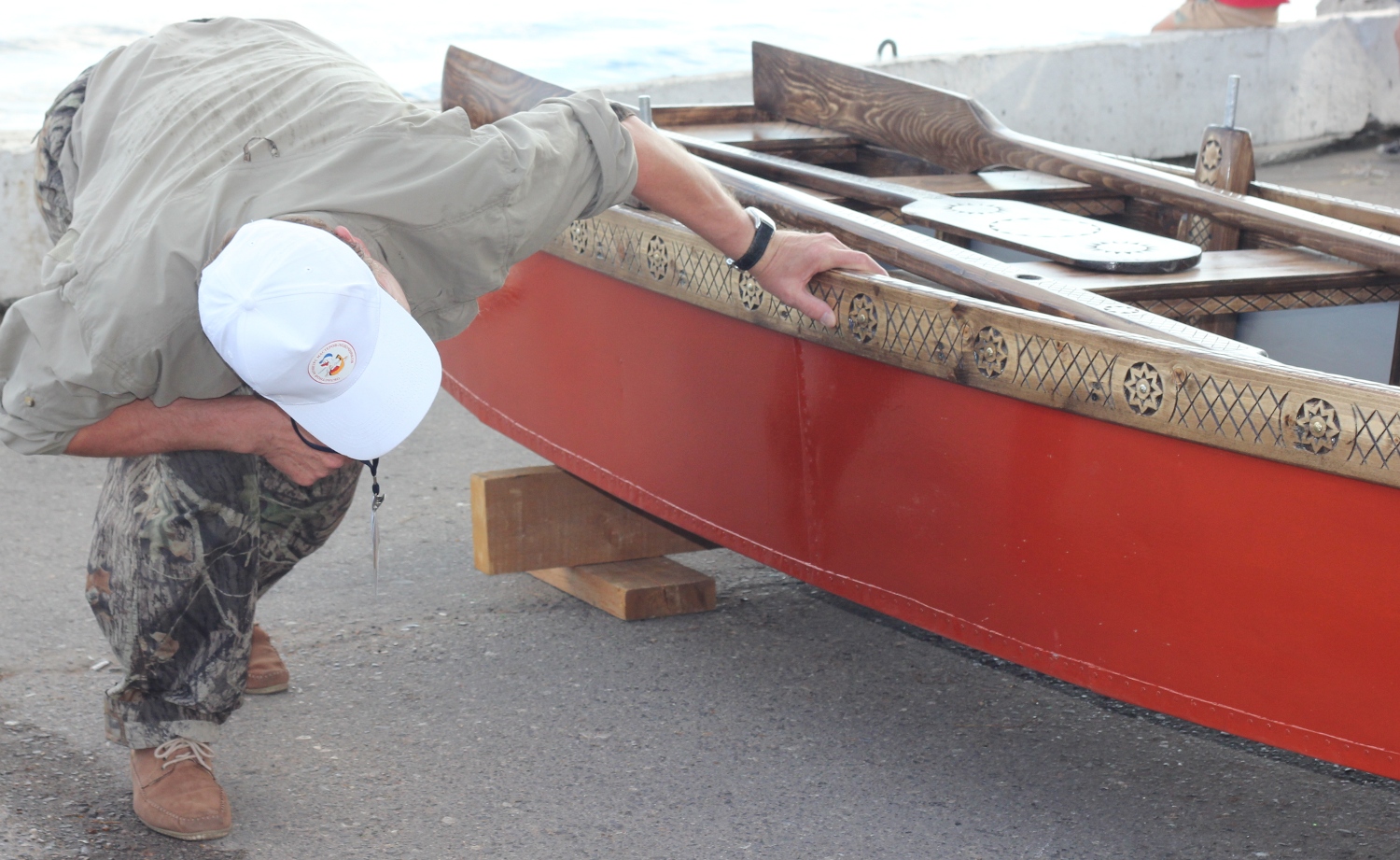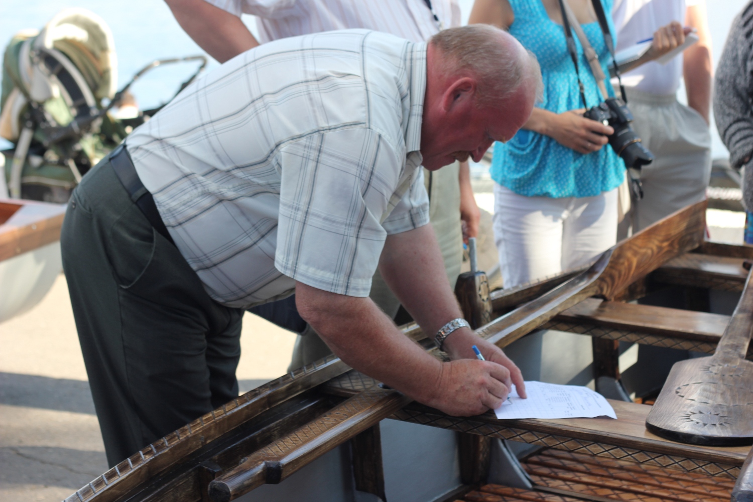 Проверил надежность изготовления и соответствие размеров весел, качество отделки, заглянул под днище.