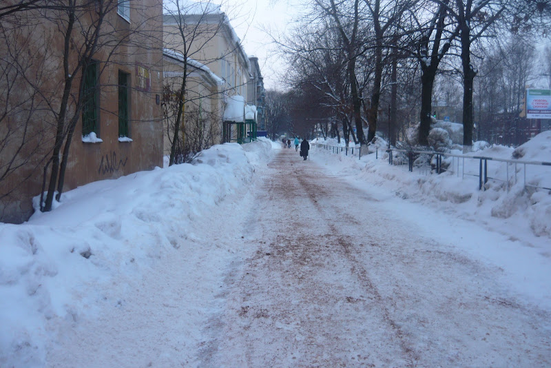 Как видно, на улице были горы снега, теперь же все чисто, также как чисто стало и на улице Мира. В некоторых местах очистили прямо с кустами