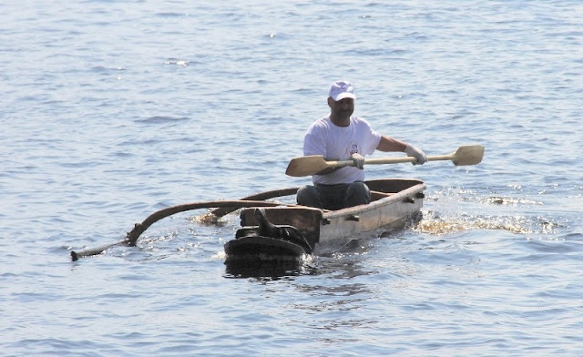 Вот его комбинированная самодельная лодочка. Я почему-то пропустил её на воде и не сфотографировал.
