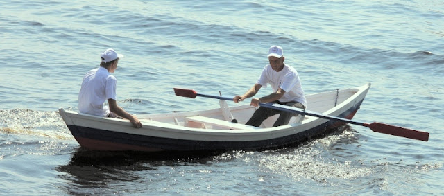 Весельная комбинированная лодка (на заднем плане).