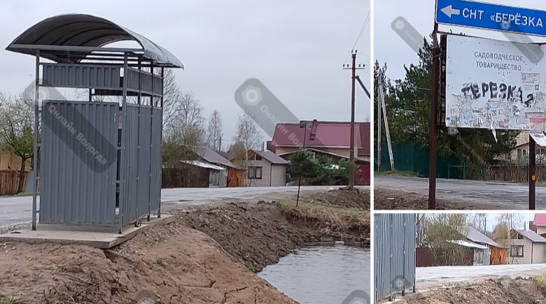 Укрепили автобусную остановку просто насыпью из песка который весь уже стало размывать