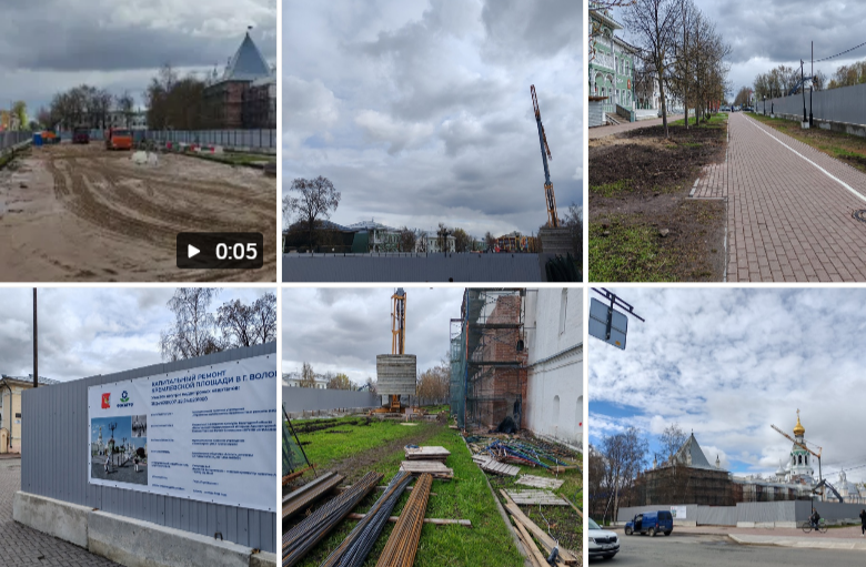 За двухметровым глухим забором работает экскаватор, установлен кран - так сейчас выглядит главная площадь Вологды, «облагодетельствованная» «благоустройством» череповецким ФосАгро.
