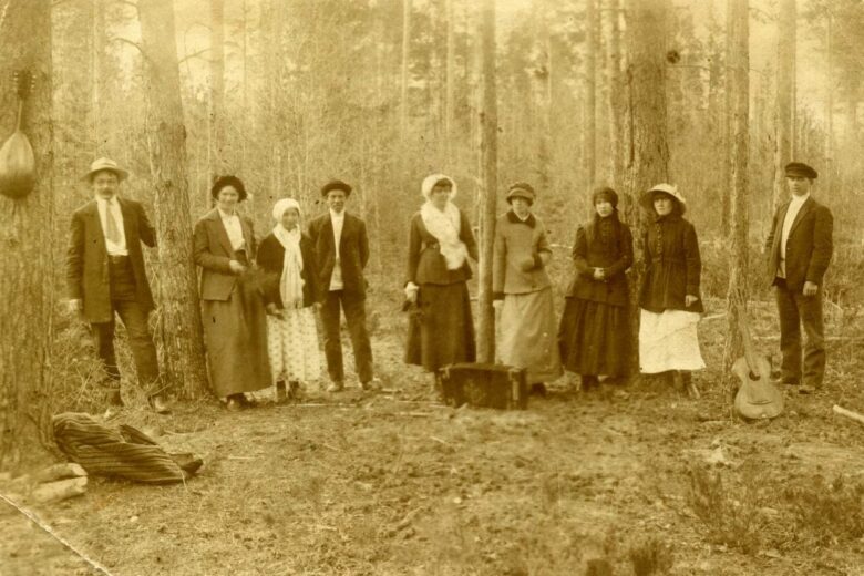 Уникальные фотографии начала XX века из архива Натальи Кошкиной-Давыдовой показывают, как отдыхали жители Крохина. Мужчины в костюмах, дамы в нарядных платьях и изящных шляпках .