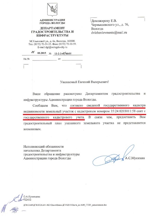 Прокуратура ответила нам, что участок 35:24:0203011:58 разделен и на временный кадастровый учет поставлено два новых земельных участка