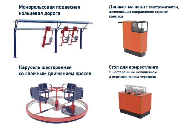 Детскую площадку оборудуют монорельсовой кольцевой дорогой, установят карусель с шестеренным движением кресел, велотренажеры с динамо-машиной и интерактивные стенды, на которых можно наглядно увидеть принцип работы разных механизмов. Все это позволит детям не только весело проводить время, но и изучать основы физики и механики. На территории игрового городка будет уложено безопасное покрытие из резиновой крошки, появятся скамейки для отдыха, урны и велопарковка.