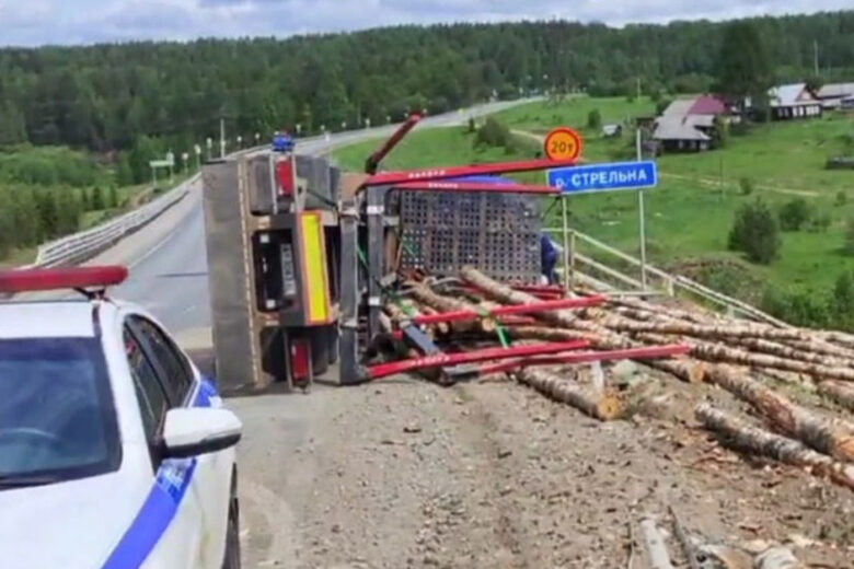 По предварительной информации, 59-летний водитель грузовика «Скания» с прицепом, груженым бревнами, не справился с управлением, из-за чего автомобиль опрокинулся на проезжую часть дороги.