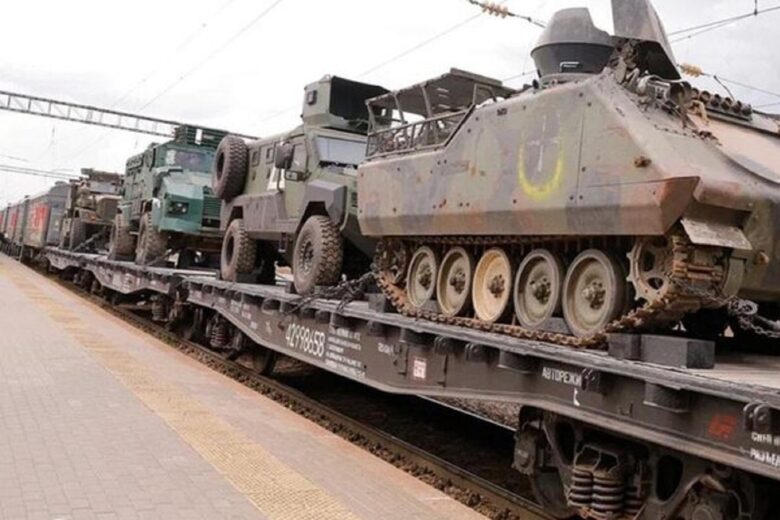 В составе поезда – четыре платформы с образцами трофейной техники