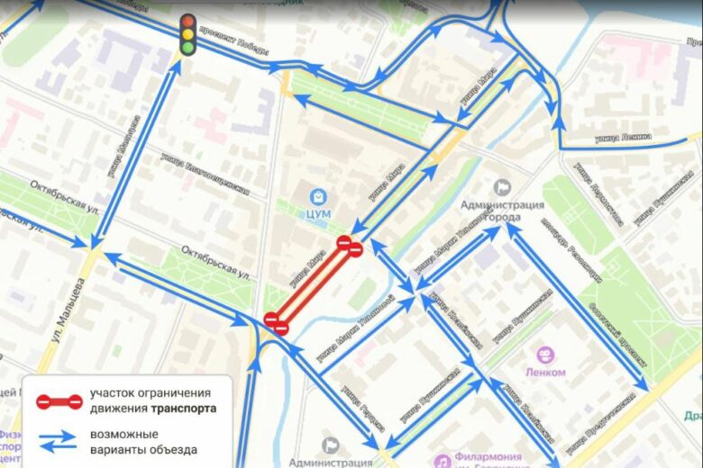 Для движения пешеходов останутся только тротуары. При этом в августе также будет перекрыт для движения участок улицы мира от Козленской до проспекта Победы, а в сентябре от проспекта Победы до улицы Сергея Орлова.