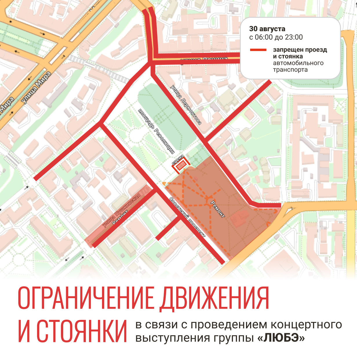 В центре Вологды в предстоящее воскресенье во время выступления группы «Любэ» будет ограничено движение транспорта. Ограничение будет действовать с 6:00 до 23:00.