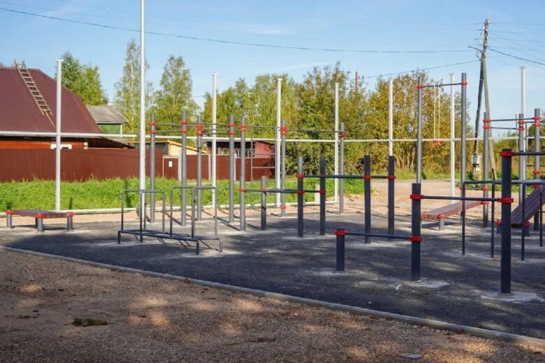 В настоящее время на площадке завершается монтаж спортивного оборудования. В зоне для воркаута уже установлены тройные турники для отжиманий и подтягиваний, комплекс с рукоходом-змеевиком, шведская стенка, пять классических турников, двойные брусья разной высоты для отжиманий, лавки с упорами и две скамьи. Рабочим осталось уложить покрытие из резиновой крошки.