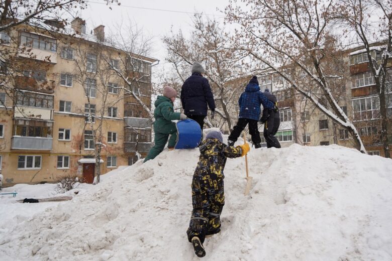 В некоторых районах горки помогала строить специальная техника. Некоторые горожане участвовали в акции целыми семьями.