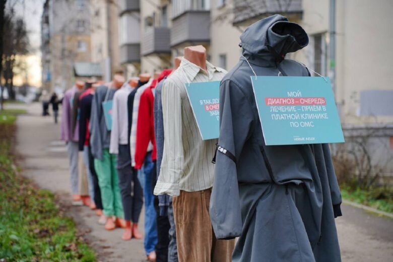 Для антуража у здания поликлиники были выставлены манекены с табличками, на которых были указаны типичные истории пациентов - недели ожидания приёма и невозможность попасть к узким специалистам. Ролик был снят в рамках конкретного предложения «Новых людей» — дать возможность жителям записываться на приём в частные клиники по полису ОМС, если приема в государственном учреждении нет или очереди приходится ждать больше недели.