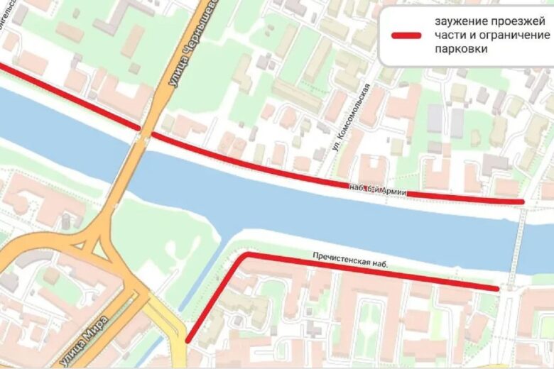Как уточнили в пресс-службе администрации города, речь идет об участках Пречистенской набережной на отрезке от Лермонтова до Красного моста и на Набережной IV Армии от улицы Энгельса до Красного моста. На этих участках вводятся временные ограничения парковки и стоянки автомобилей, поскольку будет заужена дорога. Также во время работ возможно полное перекрытие дороги для движения автомобилей.