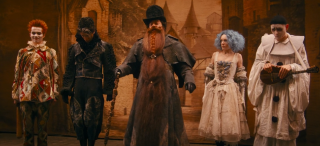 Роль Мальвины, девочки с голубыми волосами исполнила актриса 25 лет. Ничего себе куколка вымахала! Ее образ, грим и платье как-то отталкивают. А вот грим Пьеро, напоминает раскраску физиономий клоунов-убийц из ужастиков, и действительно способен напугать впечатлительных юных зрителей. Это действительно положительный персонаж? Вы ничего не перепутали?