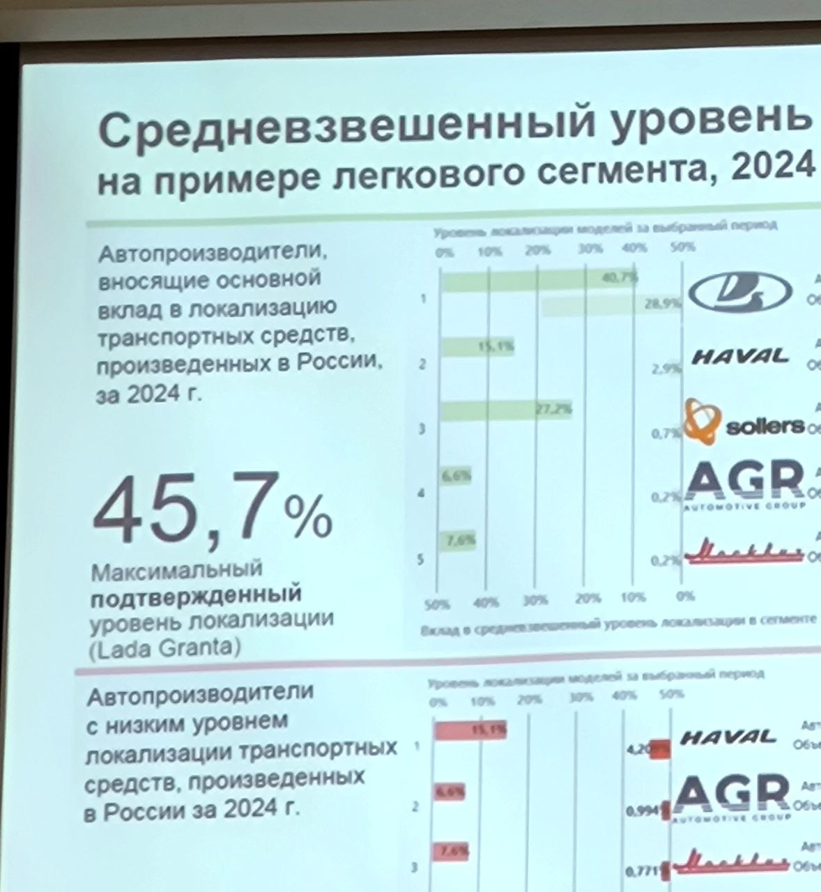 По данным научно-исследовательского автомобильного и автомоторного института (НАМИ) самый массовый автомобиль тольяттинского автозавода Lada Granta оказалась локализована лишь на 45,7%.