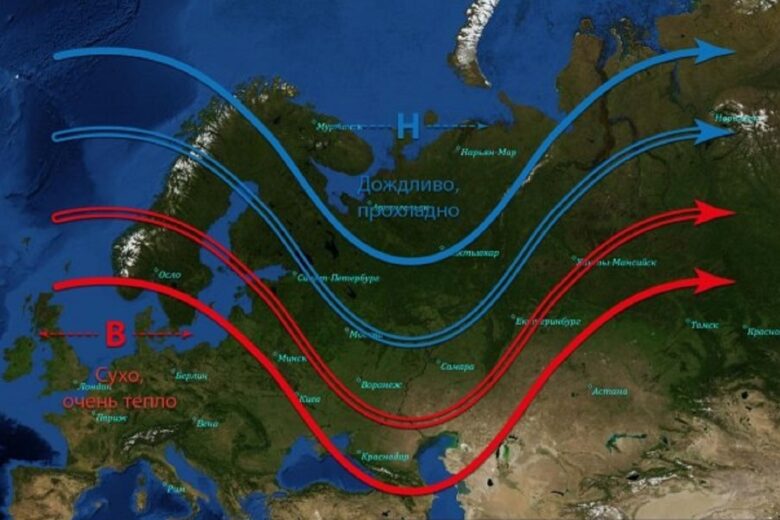 По их словам, причиной этого стал блокирующий антициклон, который располагается над Западной Европой. Такая погодная система нарушает обычное движение воздушных масс с запада на восток. Благодаря этому, в области антициклона возник период сухой теплой погоды, а на его периферии, к которой относится центр и северо-запад России, картина противоположная – холодная и влажная аномалия.