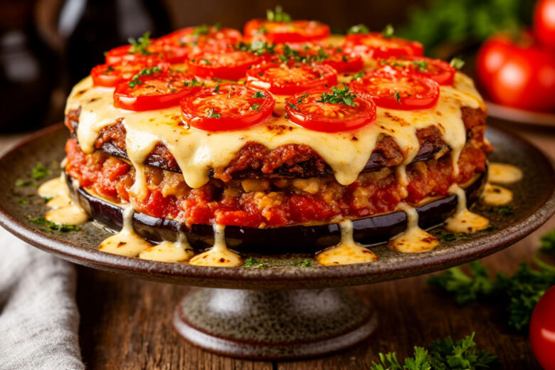 Пикантный торт из баклажанов и других овощей под сырным соусом будет готов через 20 минут. Его можно подать в качестве закуски к шашлыкам, как самостоятельное блюдо или в роли гарнира к тушеному мясу. Все продукты можно найти в теплице, на грядках в огороде, а также в супермаркете.