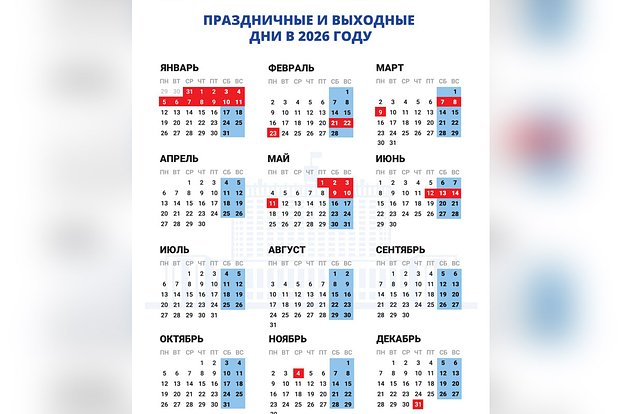 Новый календарь праздников и выходных в 2026 году утвержден правительством России
