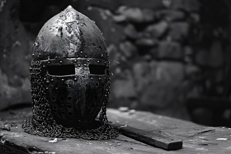 Источник фото: freepik.com/freepik шлем рыцаря на каменной плите