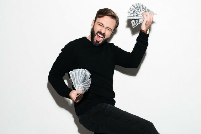 Источник фото: freepik.com/drobotdean довольный мужчина держит в руках много денег