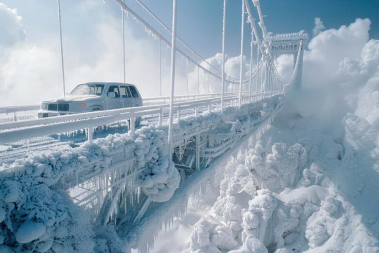 Источник фото: freepik.com/freepik наледь покрыла мост и автомобиль