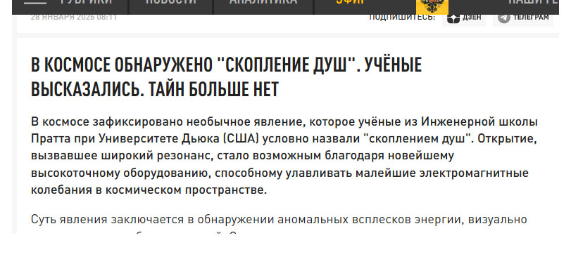 Резонансная новость о сенсационном открытии американскими учеными «Скопления душ» может быть фейком.