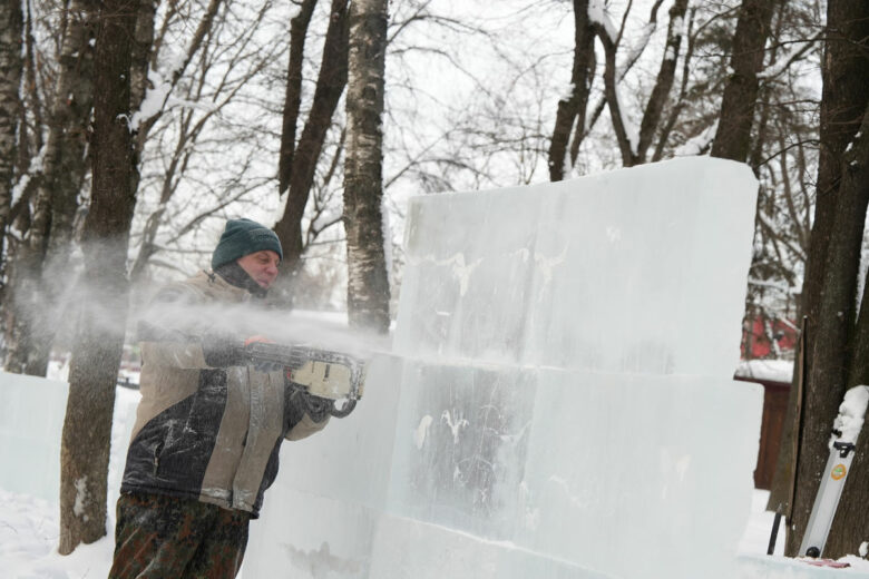 В Вологде в парке Ветеранов создают ледяные скульптуры