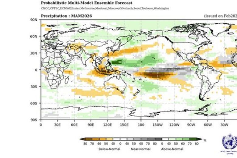 По прогнозам Всемирной метеорологической организации, аномалии температуры поверхности воды ниже среднего в центральной и восточной части экваториальной части Тихого океана ослабнут, что сигнализирует о переходе к нейтральным условиям по мере ослабления нынешней слабой Ла-Ниньи.
