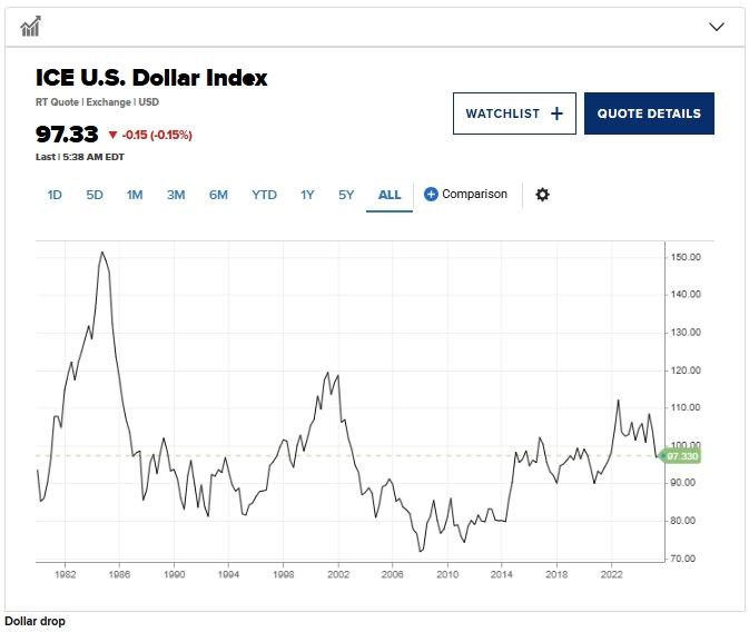 В июне 2025 года продемонстрировал худшие результаты со времен президентства Ричарда Никсона. Американская валюта за этот месяц подешевела на 10,7%, что стало наихудшим показателем за первое полугодие с 1973 года.