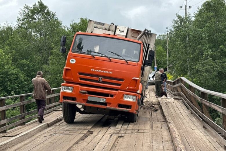 В Устюженском округе мусоровоз проломил конструкцию деревянного Ижинского моста. Происшествие случилось накануне.
