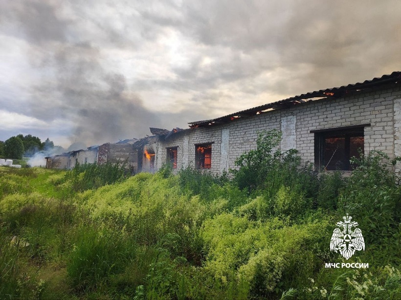 Крупный пожар произошел сегодня в деревне Покровское Шекснинского района на ферме АО «Шексна».