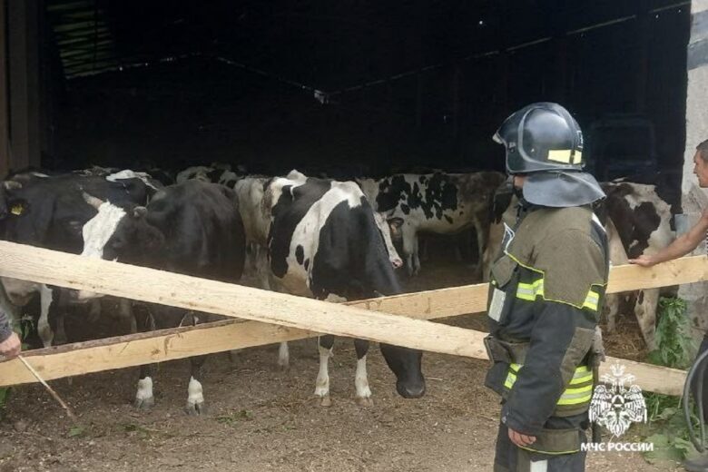 «По прибытию подразделений пожарной охраны кровля уже была охвачена огнем по всей площади. Специалисты провели эвакуацию крупного рогатого скота, всего эвакуировано более 100 коров», - рассказали в региональном управлении МЧС.