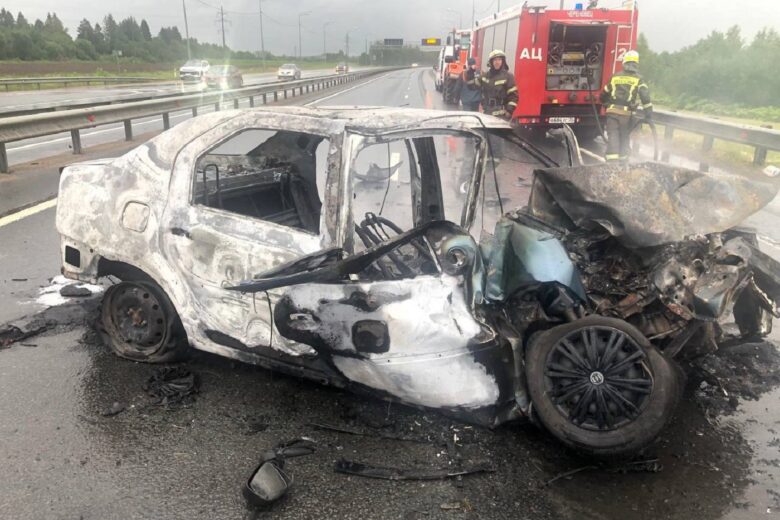 После удара легковушка загорелась. Травмы в ДТП получил 44-летний пассажир автомобиля.