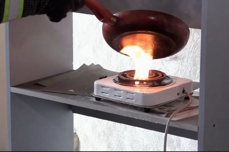 По словам пожарных, никогда нельзя заливать горящее масло водой. Чтобы сбить огонь, необходимо отключить плиту и накрыть емкость с маслом крышкой или плотной тканью. Можно засыпать солью, содой или землей из цветочного горшка.