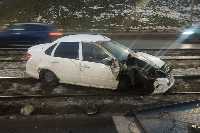 Удар был настолько сильным, что легковую машину отбросило с проезжей части на трамвайные пути. Изначально аварию оформили как ДТП с материальным ущербом, без пострадавших.
