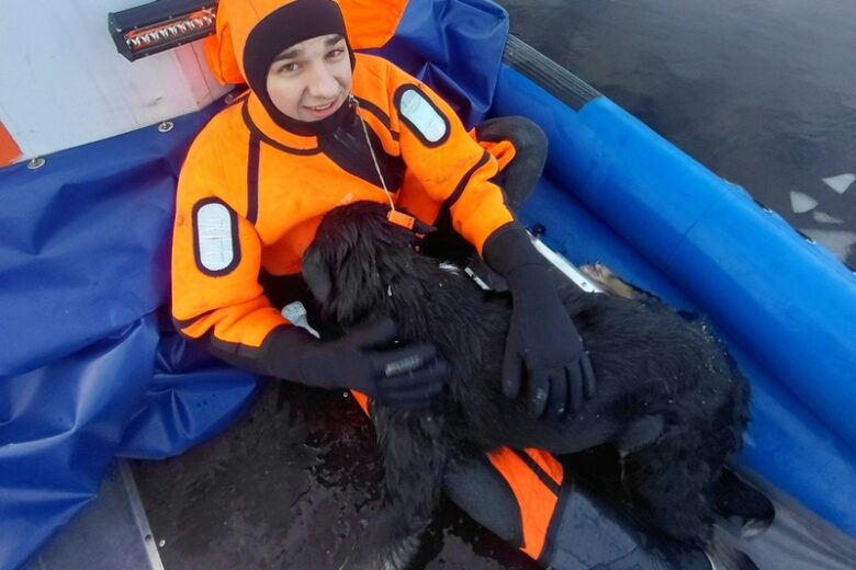На помощь прибыла аэролодка. Специалисты вытащили замерзающее животное из воды и доставили на спасательную станцию. Там собаку обогрели и накормили.