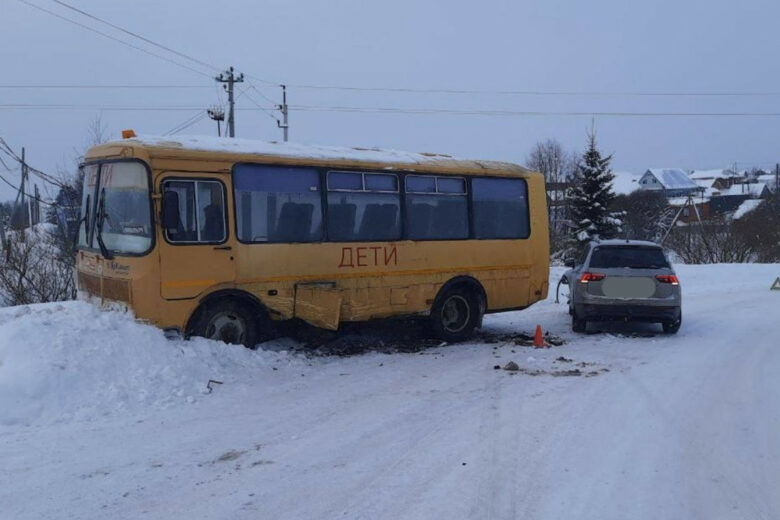 Как сообщает газета Вологодского округа «Маяк», водитель автомобиля «Фольксваген», который ехал со стороны Спасского, не справился с управлением, в результате автомобиль вынесло на встречную полосу, где произошло столкновение со школьным автобусом.