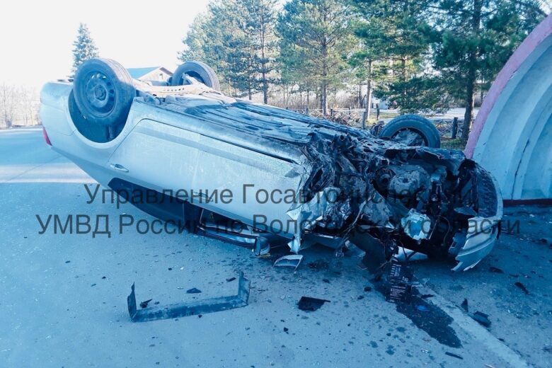 Под Череповцом иномарка перевернулась после столкновения с остановкой