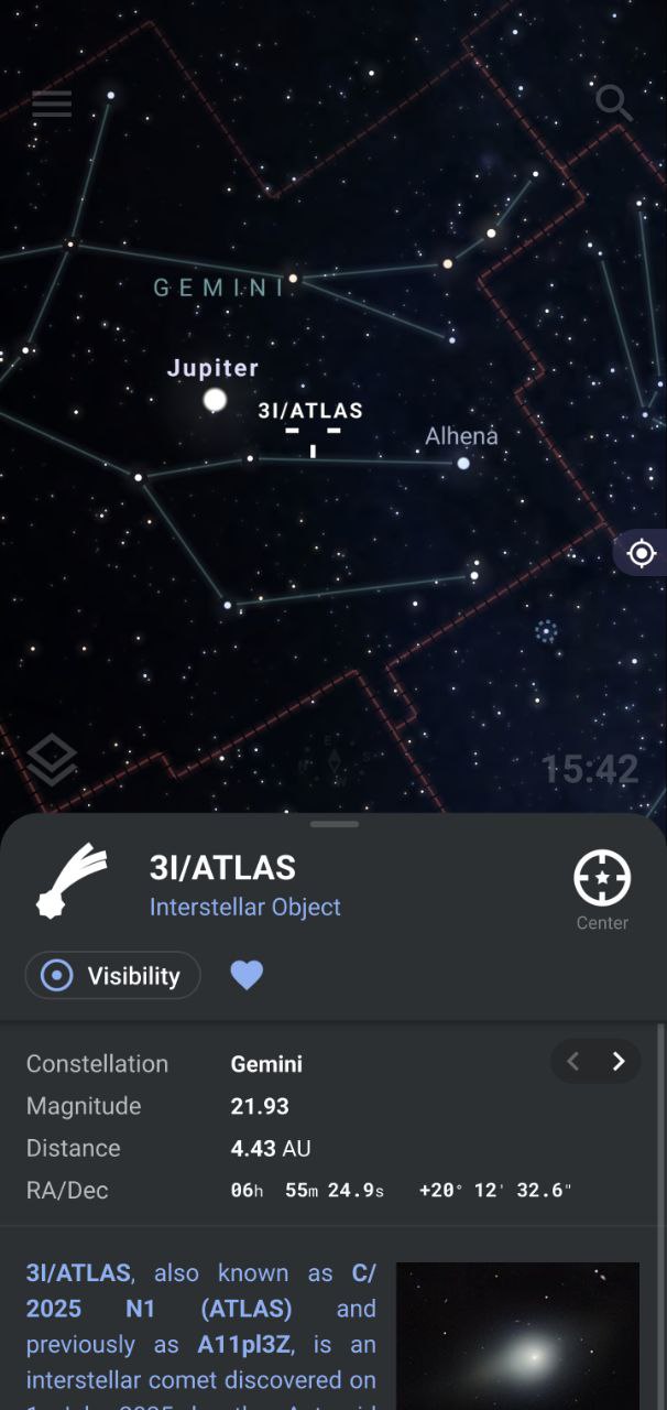 Астрономы впервые заприметили 3I/ATLAS летом внутри орбиты одного из газовых гигантов. Параметры орбиты и размер ядра (20 км) указывают на то, что это третий обнаруженный межзвездный объект в нашей системе. Ученые умы выстроили гипотезу, что комета оказалась выброшена из родной планетной системы под действием гравитации.