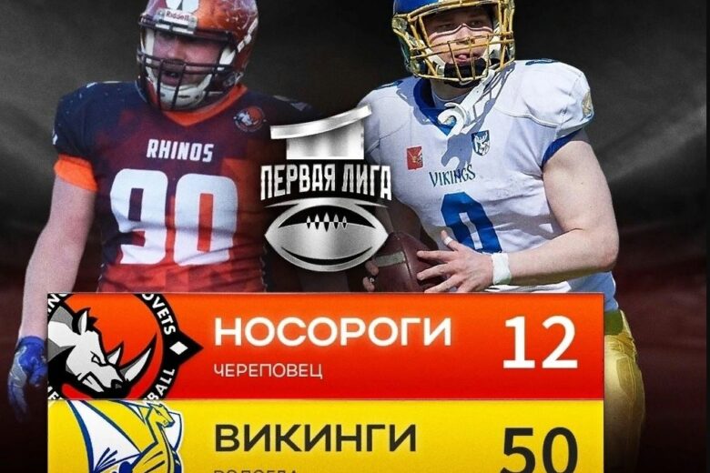 «Викинги-ВоГУ» обыграли череповецких «Носорогов» в чемпионате первой лиги по американского футболу.
